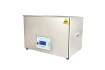通過換能器,將功率超聲頻源的聲能轉換成機械振動,通過清洗槽壁將超聲波輻射到槽子中的清洗液。由于受到超聲波的輻射,槽內液體中的微氣泡能夠在聲波的作用下快速變大破裂,破裂時產生的高強度剪切力作用于各類樣品上,從而達到清洗、提取、乳化、加速溶解、粉碎、分散等作用。